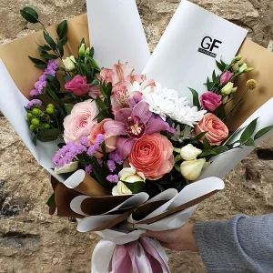 Цветочная элегантность - букет-новинка с орхидеей, розами и альстромериямиот 5 471 руб. 5 622 руб.Купить