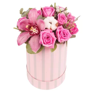 Любимой маме - шляпная коробка с розовыми и кремовыми кустовыми розамиот 7 636 руб. 7 854 руб.Купить