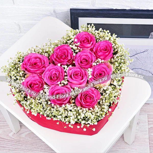 Вместо тысячи слов - композиция в виде сердца с розовыми розами